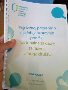 Dvodnevna edukacija za Prijelazno pripremno razdoblje sustavnih podrški Nacionalne zaklade za razvoj civilnog društva.