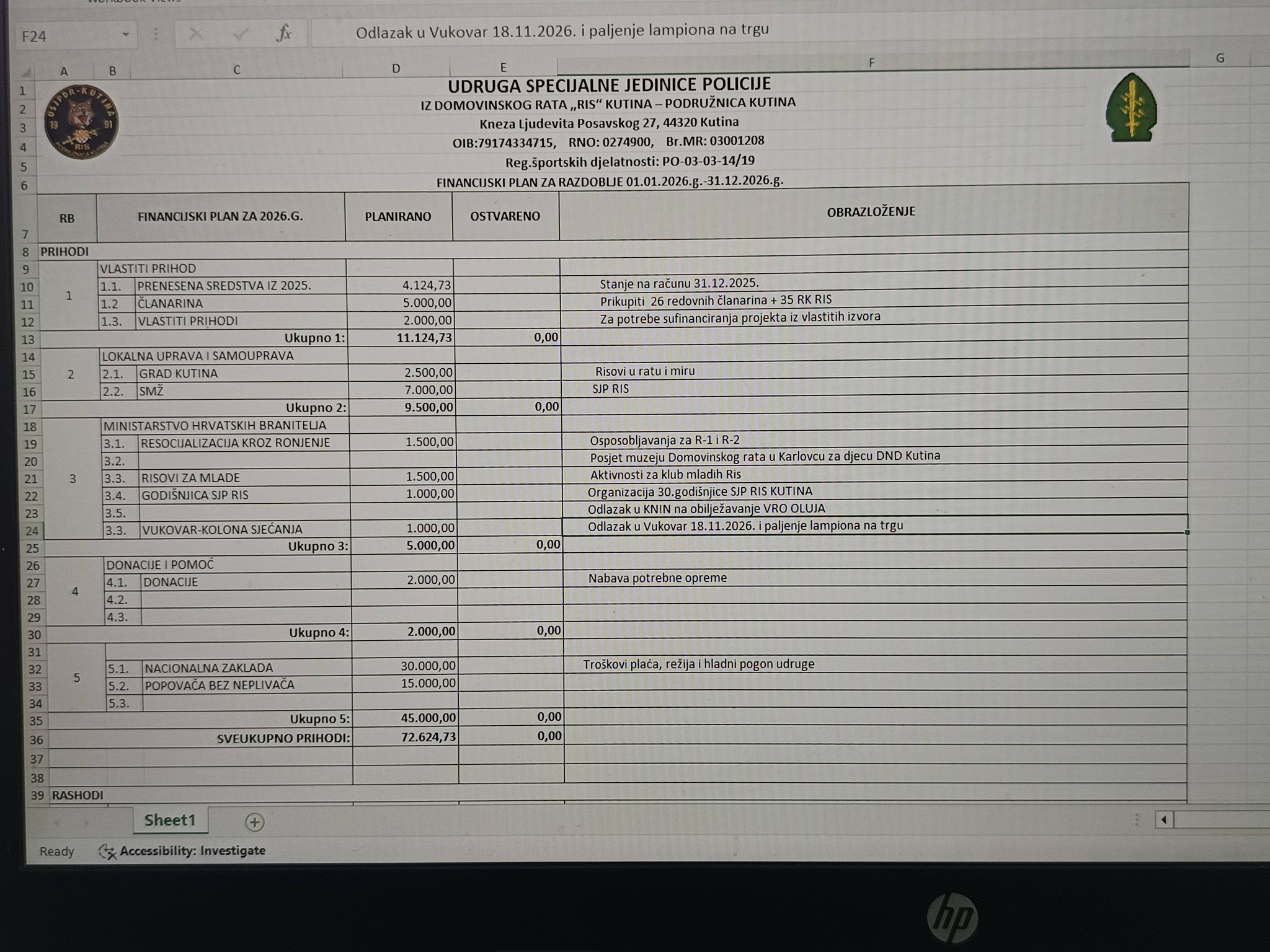 FINANCIJSKI PLAN ZA 2026. GODINU Aktualno, Ostalo 9 siječnja, 2026 Financijski plan za 2026.g. 72.634,73 eur prihoda USJPDR “RIS” KUTINA-PODRUŽNICA KUTINA korisnik je Temeljne potpore Nacionalne zaklade za razvoj civilnog društva. PrevPLAN RADA ZA 2026. GODINU DAN MEĐUNARODNOG PRIZNANJA REPUBLIKE HRVATSKE I DAN MIRNE REINTEGRACIJE HRVATSKOG PODUNAVLJANext